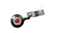 Kihúzható kártyatartó YO-YO jojó csipesz, fémházas, krómozott, övcsipesszel, d=28 mm, műgyanta matricával