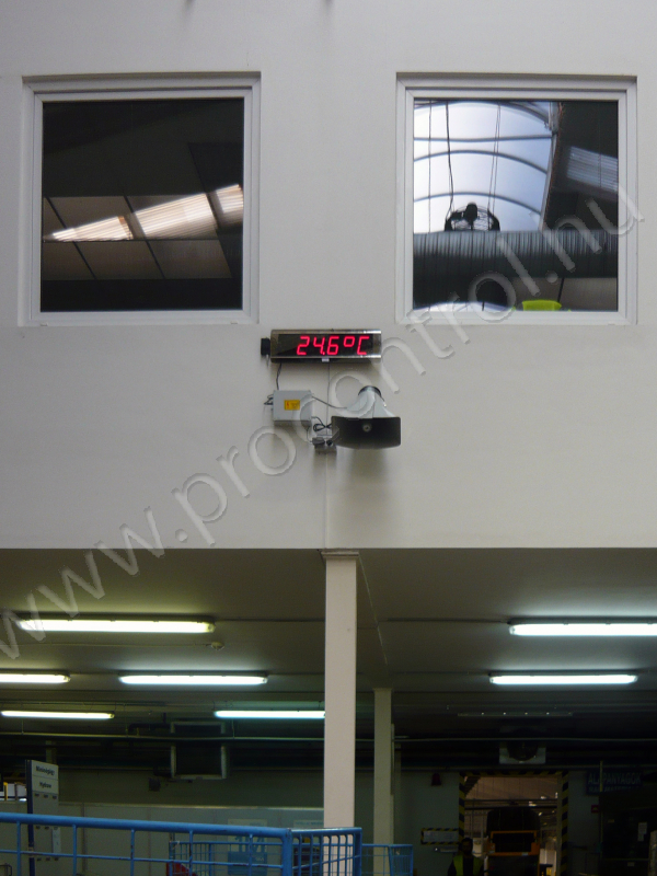 MegaClock 6-100-V-4-T industrial clock 100mm red SSD, hh/mm/ss/temperature RS485